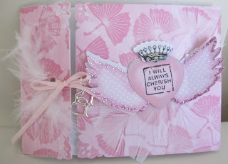 I used My Mind's Eye Love Me papers. I also used glitter paper for the gold wings.