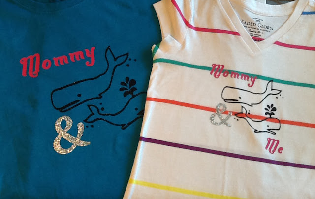 I used Cricut iron-on glitter in black with Cricut Boho-Graphics for the "mother/daughter" whales.