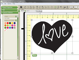 Next I went back into the HIDE CONTOUR and i hide the letters L V E then i clicked on the heart image below to make it reappear. I FLIPPED the design and cut it from the Cricut iron-on glitter vinyl.